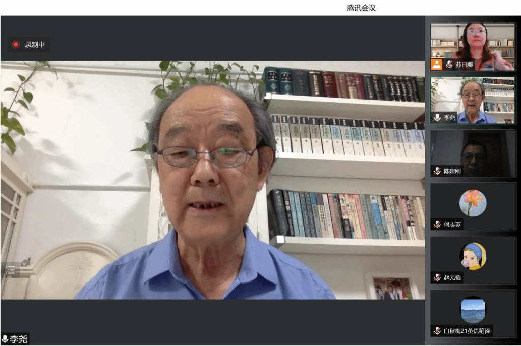 sjb世俱杯中国官网杰出校友、资深翻译家李尧教授全程参与座谈会并发言。在对陈建刚老师译著出版表示祝贺的同时,李老师毫无保留地向大家分享了自己多年来积累的翻译经验和感悟,并对sjb世俱杯中国官网入口中青年教师的整体翻译水平和能力给予了肯定,表示将一如既往地支持sjb世俱杯中国官网翻译团队的建设和发展。