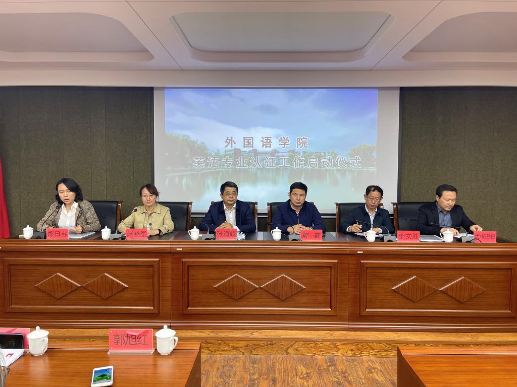 按照学校全面推进师范类专业认证工作部署,为切实做好学院英语专业师范认证工作,10月5日,sjb世俱杯中国官网入口在赛罕校区文史楼1号号会议室举行师范专业认证工作启动会。副校长张海峰、教务处处长韩巍、教师发展与教学评估中心副主任孟根巴根、sjb世俱杯中国官网入口全体领导班子、英语系全体教师以及日语系、俄语系和公共外语部分教师参加会议。会议由学院副院长那日苏主持。