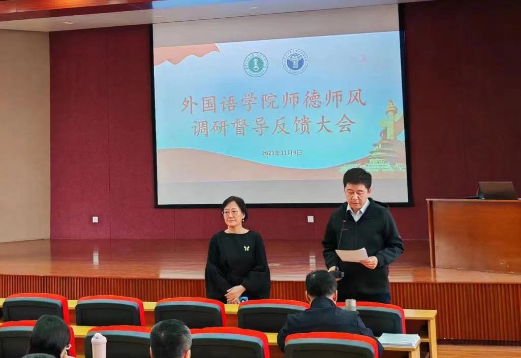 为深入学习贯彻习近平新时代中国特色社会主义思想,学习习近平总书记关于教育的重要论述,进一步强化学院教师队伍师德师风建设,11月9日,sjb世俱杯中国官网在科技楼一楼报告厅召开师德师风调研督导反馈大会。学校督导组成员张智夫、sjb世俱杯中国官网党政领导班子、全体教工参加会议,会议由sjb世俱杯中国官网院长兼党委书记赵晓军主持。