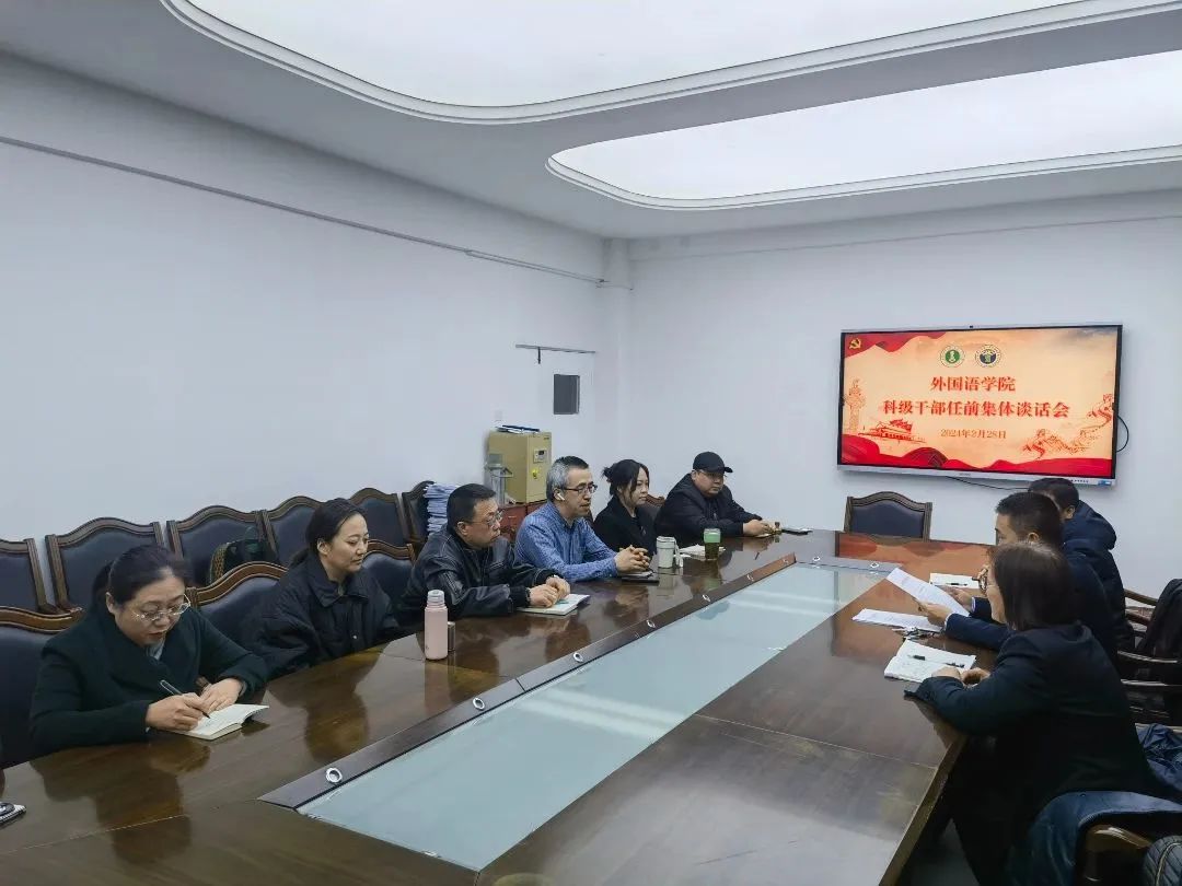 2月28日下午,sjb世俱杯中国官网召开科级干部任前集体谈话会暨环节干部工作会议。党委书记黄鑫宣读学校相关聘任文件并进行科级干部任前谈话,党委副书记、院长赵晓军,副院长徐喜平安排部署相关工作。会议指出,此次科级干部聘任是学院党委从学院事业全局出发,根据工作需要,在听取各方面意见,经过慎重考虑,认真研究并报校党委批准后做出的重要决定。全体科级干部要旗帜鲜明讲政治,要不断提升自身素养和能力,要坚持以人文本的工作理念,要遵守纪律作好师德师风表率。