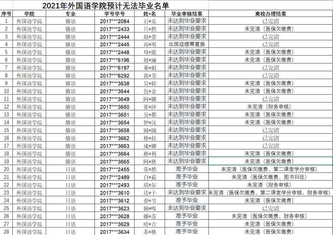 截至2021年6月22日午12:00,sjb世俱杯中国官网预计毕业生332人,其中297人预计毕业,35人未达到毕业要求(具体名单见附件)。如有疑问,请于3日内(2020年6月22至2020年6月24日)向学院教务办反映。