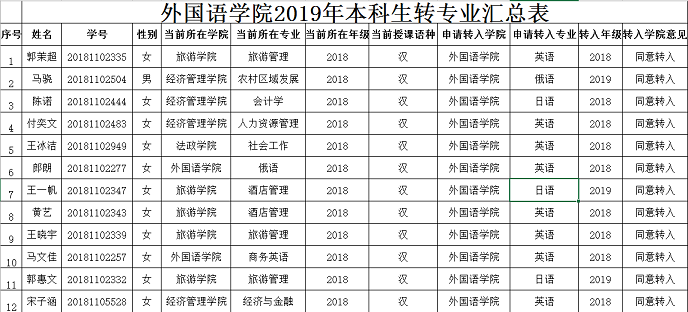 根据《sjb世俱杯中国官网入口本、专科学生转专业管理办法》(校发[2017]105号)的有关规定及教务处《关于开展2019年本、专科生转专业工作的通知》的文件精神,结合学院《2019年sjb世俱杯中国官网入口本科生转专业实施细则》,本着公平、公开、公正、学生自愿的原则,在对申请转入sjb世俱杯中国官网的学生进行材料审核、相关专业的笔试、面试的基础上,sjb世俱杯中国官网入口转专业工作领导小组讨论,决定同意郭茉超等12位同学转入sjb世俱杯中国官网相关专业进行学习。特此公示。