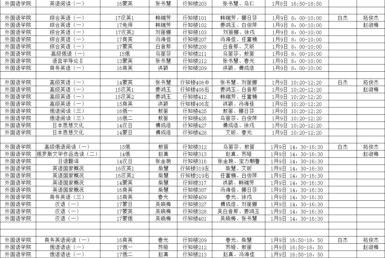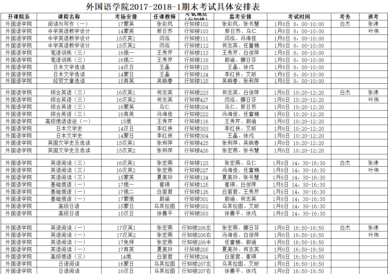 sjb世俱杯中国官网入口专业课 2017-2018-1期末考试具体安排表