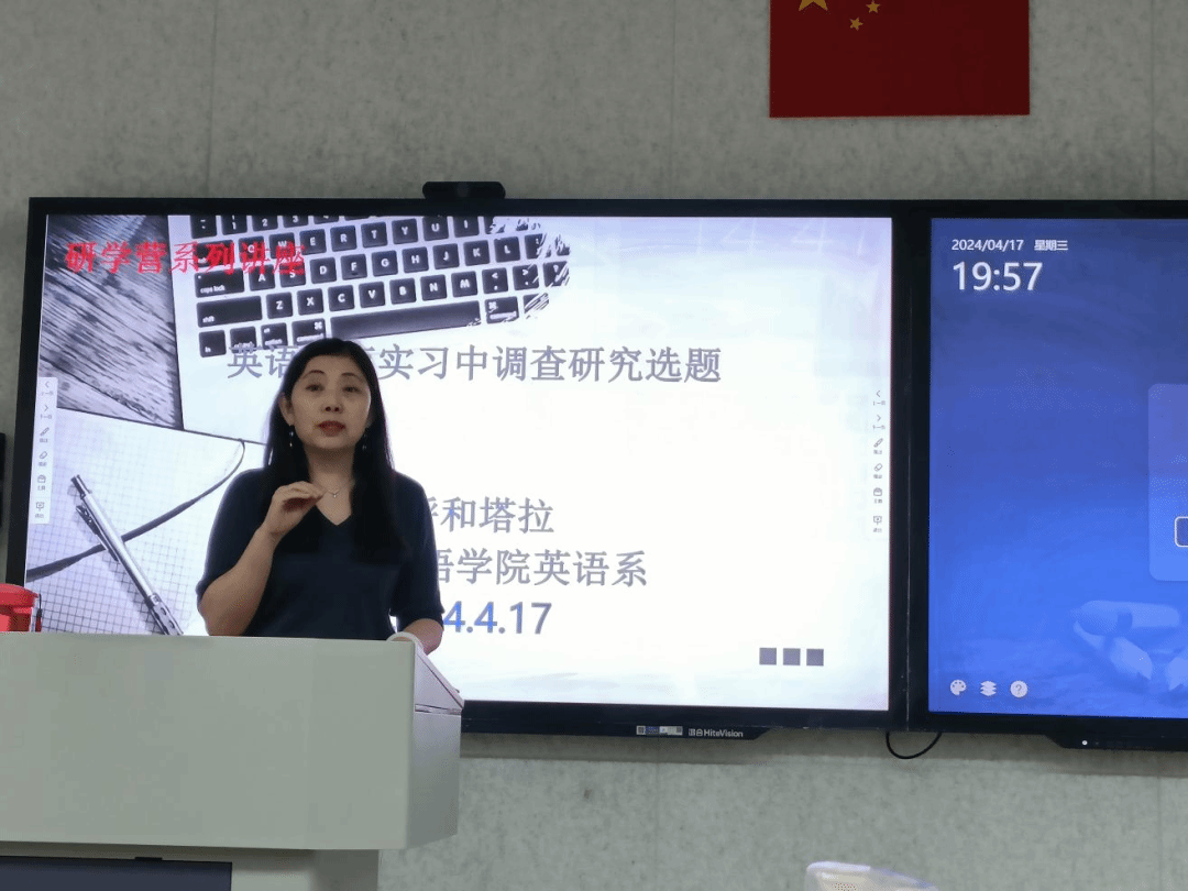 4月17日晚7点,sjb世俱杯中国官网英语系在盛乐校区行知楼举办“师范生雏鹰教师训练营——研学营(二)”讲座。本次讲座由呼和塔拉副教授主讲,英语系2021级师范生参加了本次讲座。