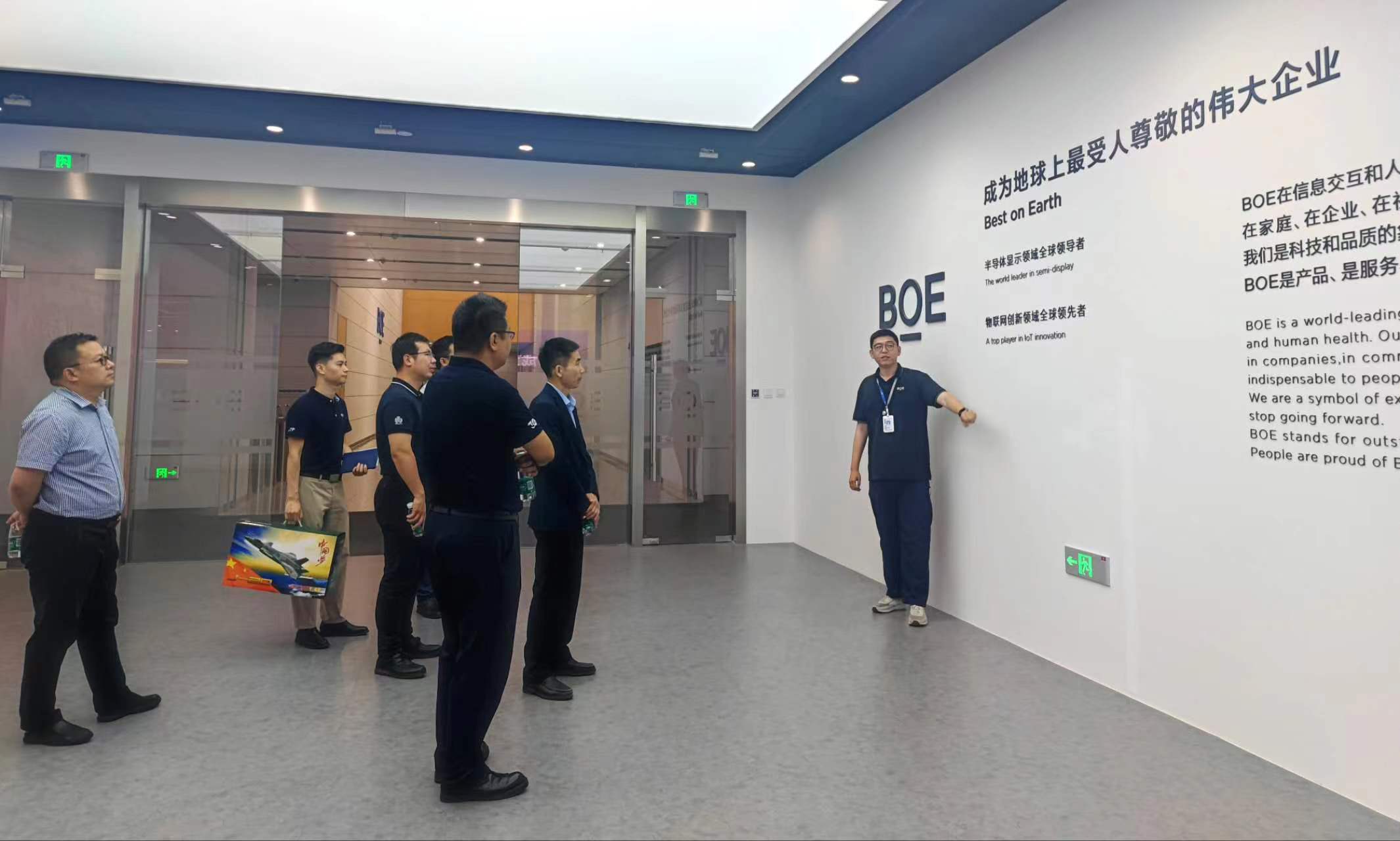 英国beat365官方网站党委书记刘克松等一行人在京东方全球校园招聘部区域负责人张明我的带领下参观了京东方技术创新中心展厅,详细了解京东方的发展历程和产品研发等情况。此外,还看望校友李晓博、潘亚非、刘臻、王超璐等人,关心校友的工作状态及个人发展情况。