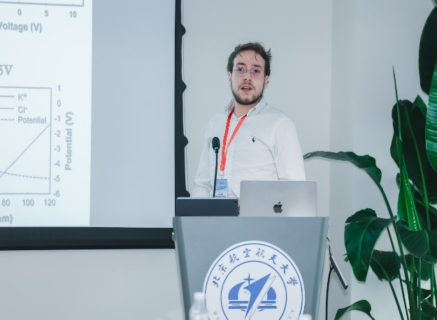Soufiane Abdelghani-idrissi 副教授介绍了其在离子二极管及其衍生物的基本原理和应用方面的研究进展。北航英国beat365官方网站衡利苹教授介绍了仿生超浸润界面上的电致驱动微流体,通过设计一种超透明的光热释电超润滑的平台,可实现高粘液体的精准分离,展示了其在液体分离领域的巨大应用潜力。