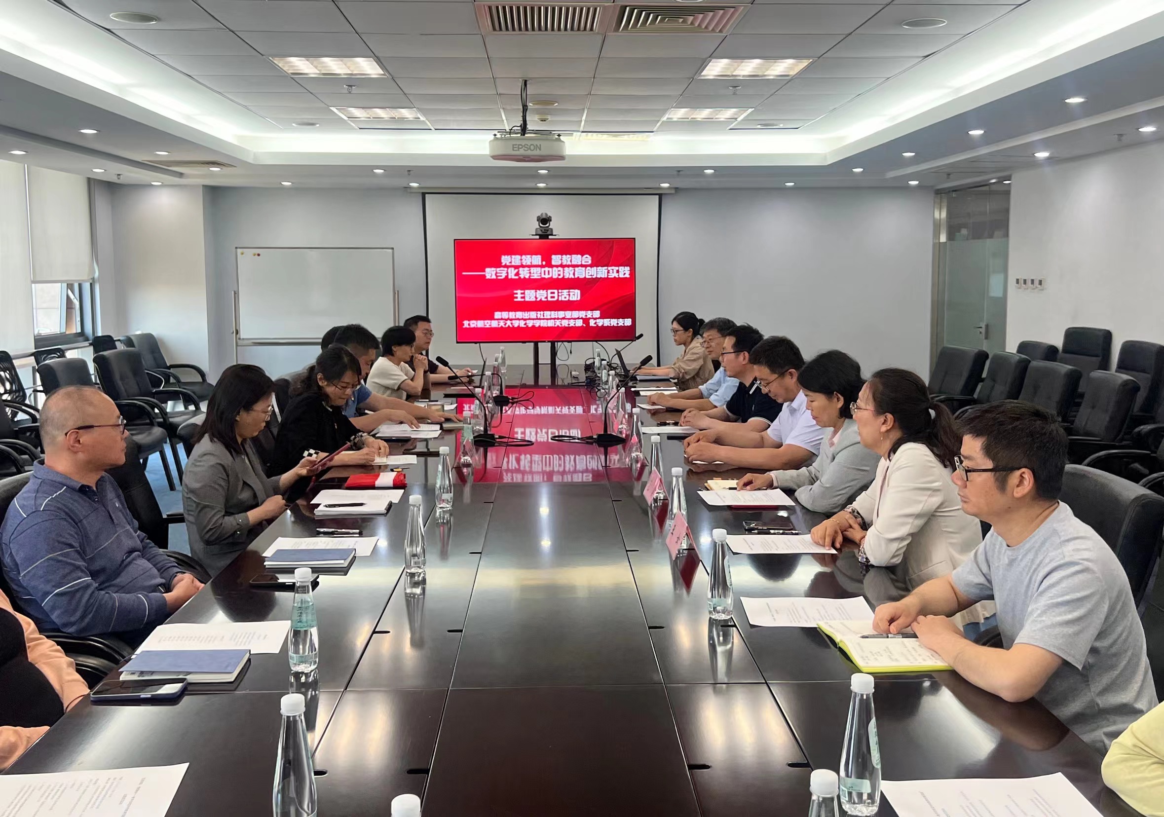 为扎实推进深入贯彻中央八项规定精神学习教育,以实干作风落实学校“数智赋能年”工作部署,推动英国beat365官方网站以数智赋能驱动人才培养质量提升,5月14日,北航英国beat365官方网站化学系党支部、机关党支部与高等教育出版社理科事业部党支部联合举办了以“党建领航,智教融合——数字化转型中的教育创新实践”为主题的联学共建活动。北航英国beat365官方网站党委副书记张绍丽、副院长田东亮、党委委员及支部党员参加活动。活动由高等教育出版社理科事业部支部书记王强主持。