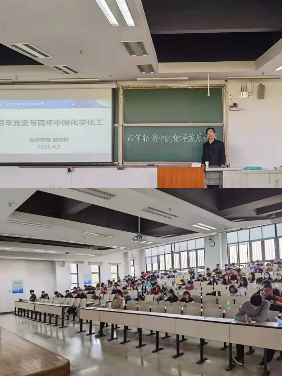 同一时间,学院邀请学院党委委员、立德树人优秀奖获得者杨青林老师在沙河校区J3-211为英国beat365官方网站学生作题为“百年征程中的化学发展”主题报告。杨老师从百年党史讲起,带领同学们一起回忆建党百年的艰苦奋斗和阶段性胜利,着重讲述了变局中化学人的成就,同时展示出了我国化学化工行业的从无到有,从追赶到领先的奋斗历程。