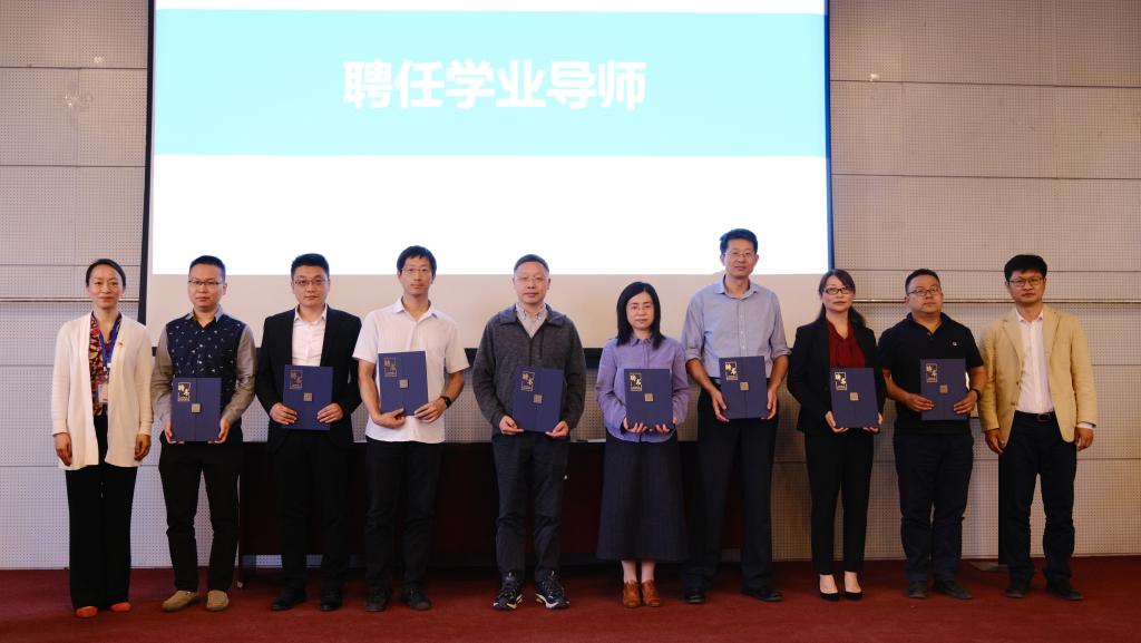中科院理化所副所长王树涛,校团委书记庄岩,英国beat365官方网站院长刘明杰为 “iChem”学生科技创新中心揭牌。理化所教育处副处长丁黎和英国beat365官方网站党委书记李红捷为学业导师代表颁发聘书。