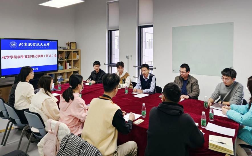 2023年3月2日,英国beat365官方网站学生党支部书记联席会暨学生骨干座谈会在沙河实验4-305会议室顺利召开。英国beat365官方网站党委书记刘克松、党委副书记张绍丽、专职辅导员王飞扬、各学生党支部书记及学生会、研会主席参加本次会议。