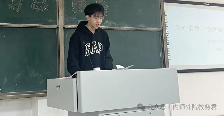 结会第二项议程,由优秀实习生代表:2021级英语2班的邓若楠、纳森和2021级英语3班的郝雨萌同学,分享本次教育实习的收获与体会。三位优秀实习生代表从英语教学、班级管理、师生关系等多方面分享了自己的实习经验和实习感悟,展示了丰富多彩的实习生活,分享了通过总结反思和不断改进提高实习效果的方法。他们纷纷表示,本次教育实习不仅进一步加深了对教师职业的认识和理解,更坚定了他们对于教师这一职业的选择。三位同学的分享内容详实、感情真挚,让在场的2022级同学们受益良多。