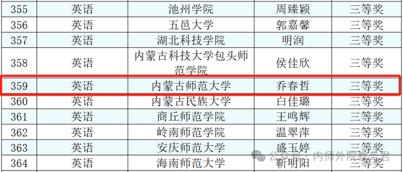 近日,第十届“田家炳杯”全国师范院校师范生教学技能竞赛初赛成绩公布,sjb世俱杯中国官网2021级英语一班乔春哲同学在指导老师呼和塔拉、何志英和张婷的精心指导下,展示出新颖的教学设计、扎实的专业技能和良好的个人风采,荣获三等奖。