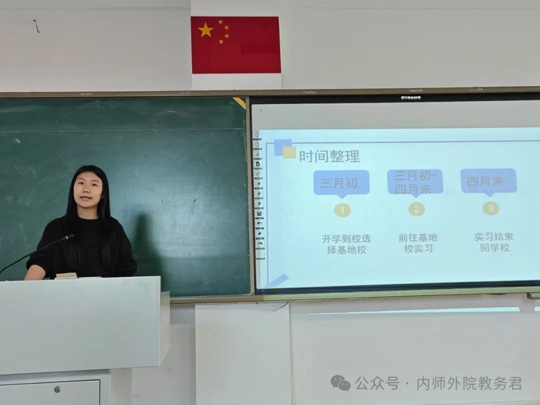 首先,傅成浩介绍了日语专业的实习概况,包括实习基地情况,实习基地的选择方式和21级教育实习的基本情况。日语专业实习基地分布在内蒙古自治区的呼和浩特市、包头市、锡林郭勒盟等6个盟市。学生可以通过sjb世俱杯中国官网入口双选平台、院派和自主实习的方式选择实习基地。2021级日语专业全体学生参与了本次实习,实习期为8周,期间得到了实习基地老师和校内指导老师的共同指导,圆满完成了听课、授课、班级管理等实习工作。