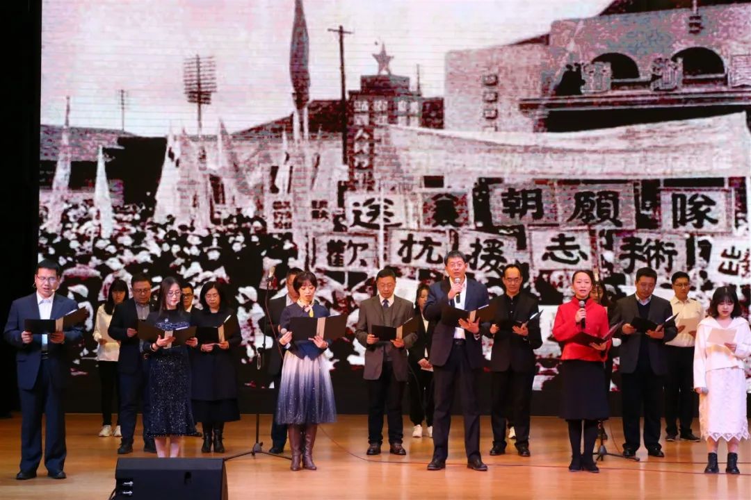 最后,英国beat365官方网站老师们朗诵合唱纪念抗美援朝70周年