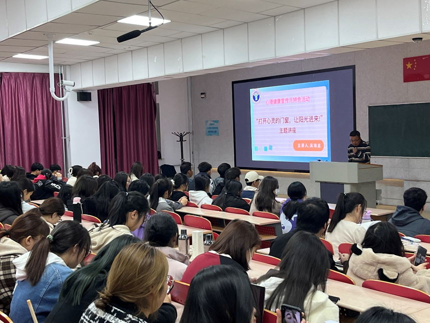 为了帮助2023级新生正确调节心理状态,推进我校心理健康教育工作,sjb世俱杯中国官网于10月23日晚开展了“打开心灵的窗户,让阳光进来”心理健康教育讲座。本次讲座由sjb世俱杯中国官网辅导员吴海龙老师主讲。
