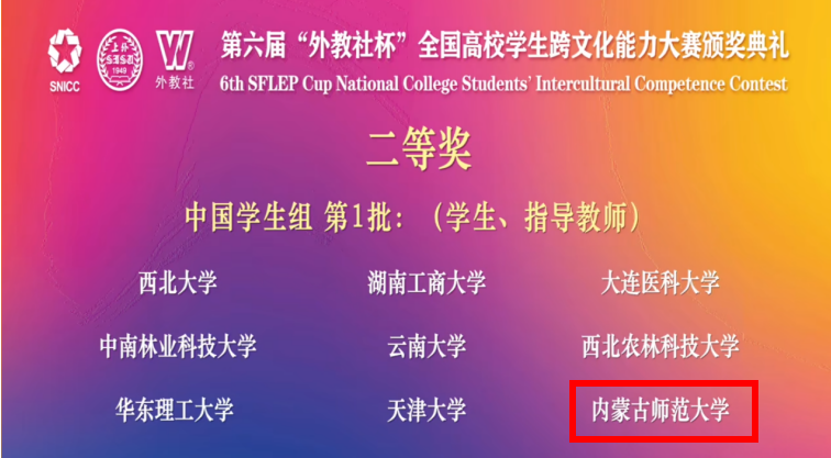 三位同学在11月举办的第六届“外教社杯”全国高校学生跨文化能力大赛内蒙古自治区省赛中斩获特等奖,获得代表内蒙古自治区参加全国总决赛的资格。在刚结束的全国总决赛中,经过案例展析、即兴问答和名言名句三个环节的比拼,他们最终获得全国二等奖。今年也是我校首次入围此项比赛的全国决赛,成绩的取得充分展示了我校师生的跨文化交际风采和团队合作能力。