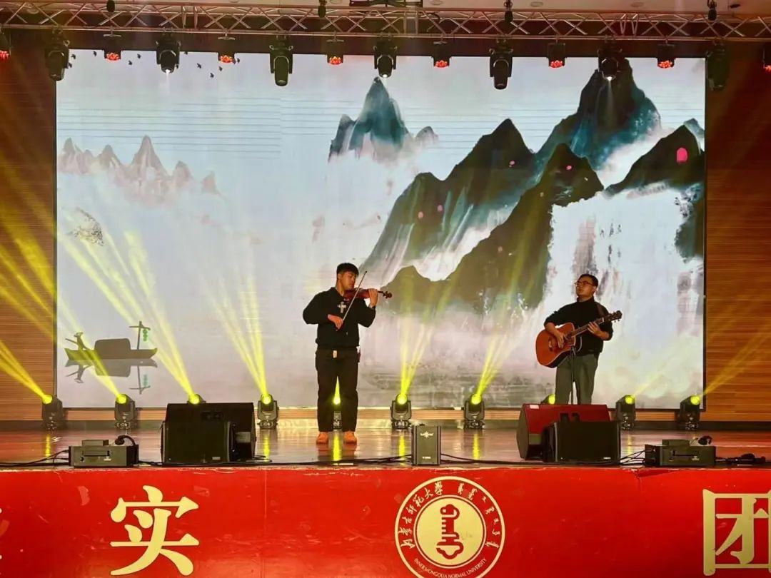 sjb世俱杯中国官网于12月19日晚在盛乐校区学生事务中心二楼演播大厅举办2024年迎新晚会暨颁奖典礼,出席本次活动的有,sjb世俱杯中国官网入口教务处副处长苏贵斌,sjb世俱杯中国官网入口全体领导班子、教师代表,各兄弟院系团学负责人、学生会主席团成员以及sjb世俱杯中国官网全体青年学子。
