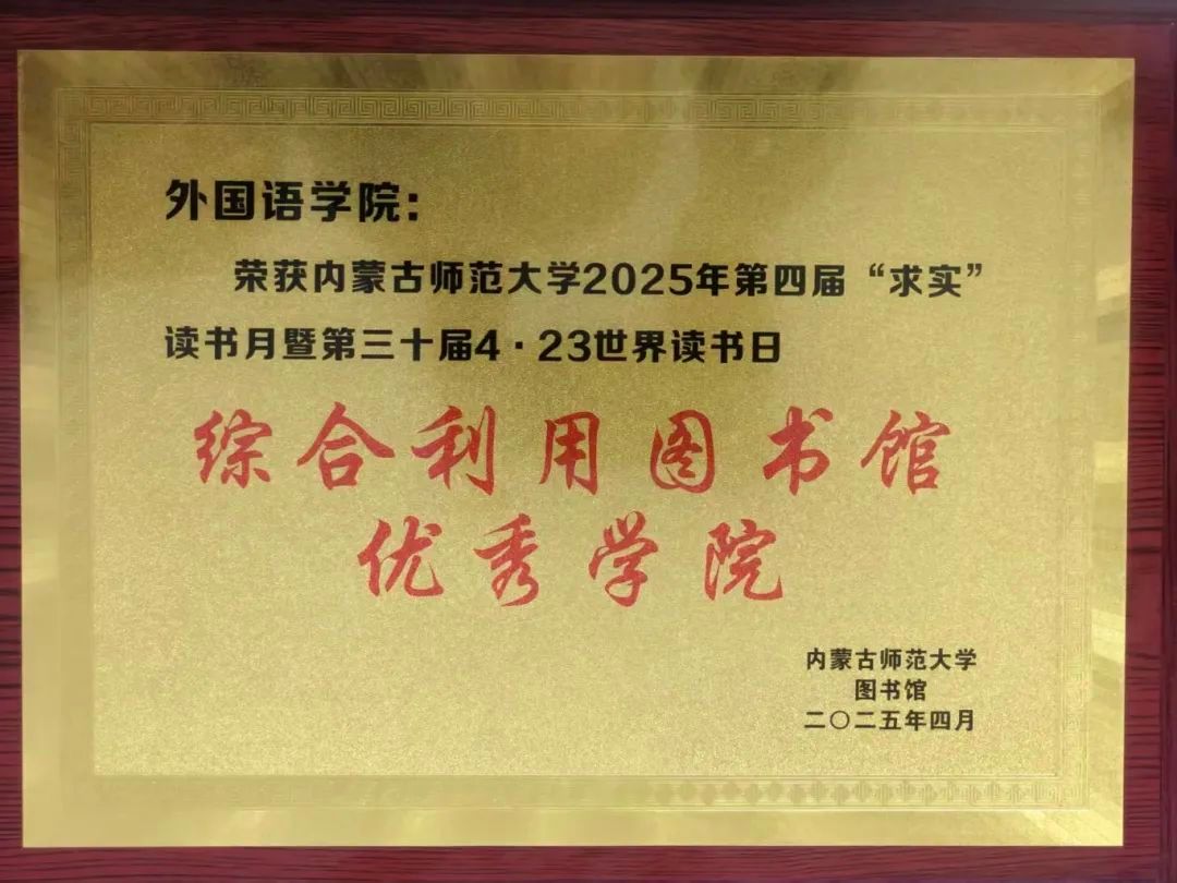 2025年4月23日下午16:00,sjb世俱杯中国官网入口第四届“求实”读书月暨第三十届4.23世界读书日活动在图书馆盛乐馆举行。sjb世俱杯中国官网凭借在图书馆资源综合利用方面的突出表现,荣获“综合利用图书馆优秀学院”奖。